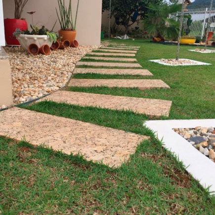 Ideais para formar caminhos e passagens no jardim, os pisantes serrados oferecem firmeza e praticidade, garantindo uma circulação segura sem danificar o gramado. Seu formato regular facilita o alinhamento e a instalação.